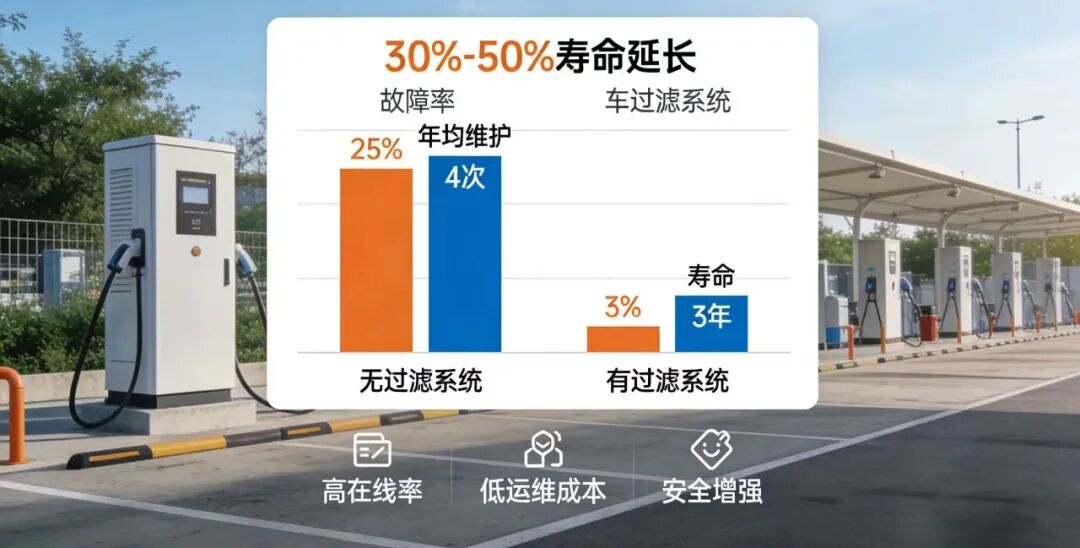 · 提高在线率(Uptime):减少因环境因素导致的故障停机,直接提升充电服务可用性和运营商收益。